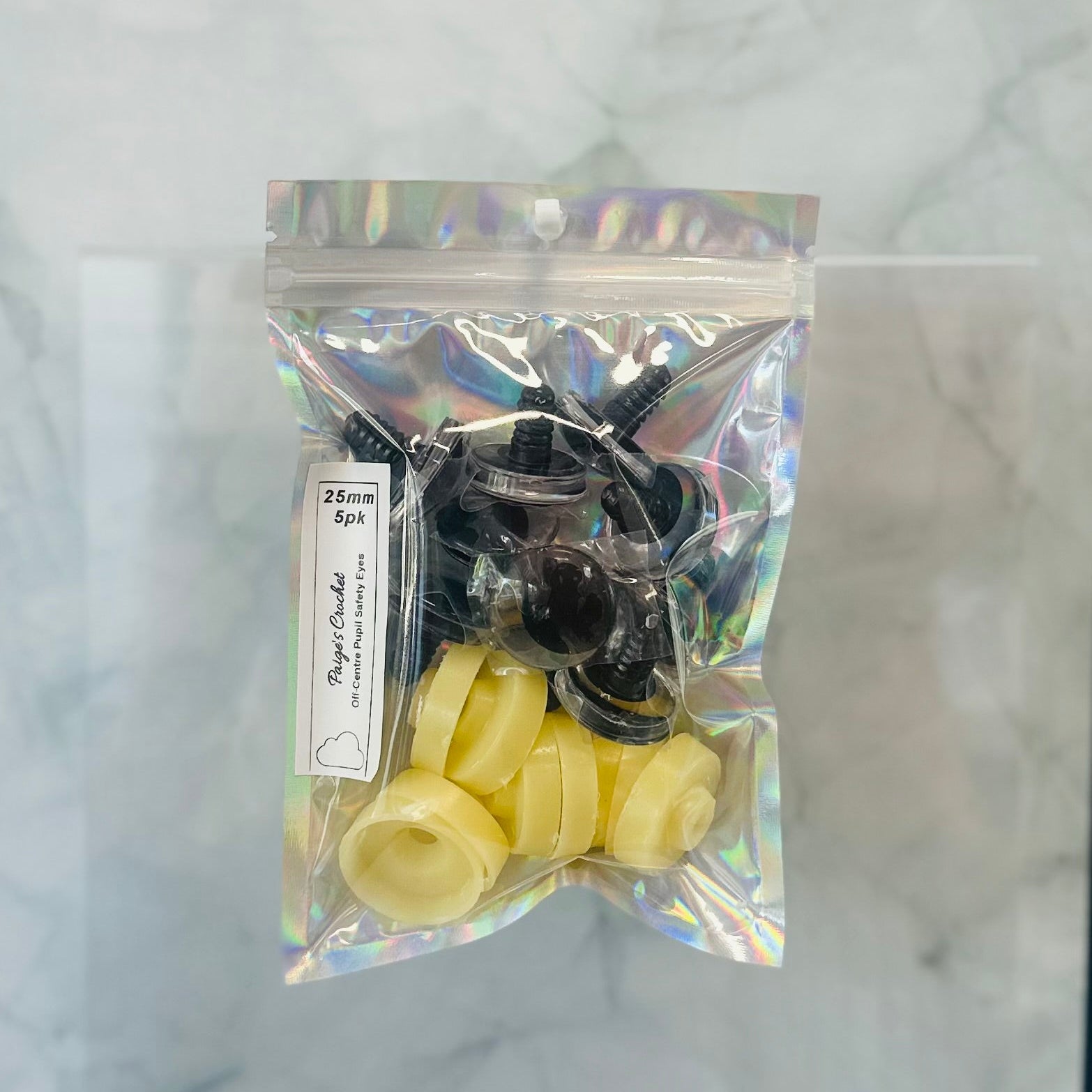 Each pack includes 5 pairs of safety eyes in your selected size, along with a 5 pack of Prism Plates to create a striking custom look when installed.